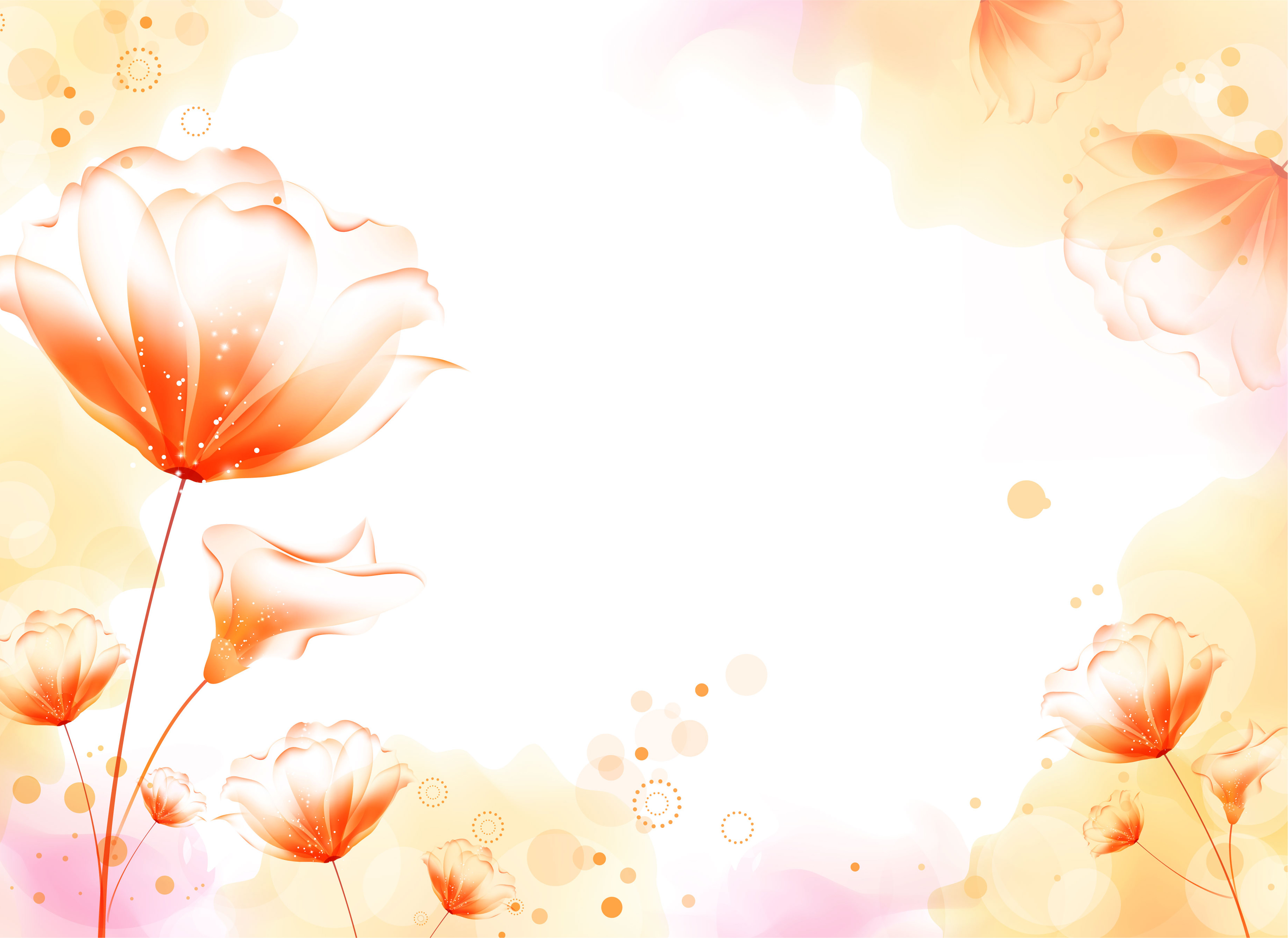 Размытая акварель с оранжевым фоном в окружении кремовых астр и бледно-лиловых гортензий.